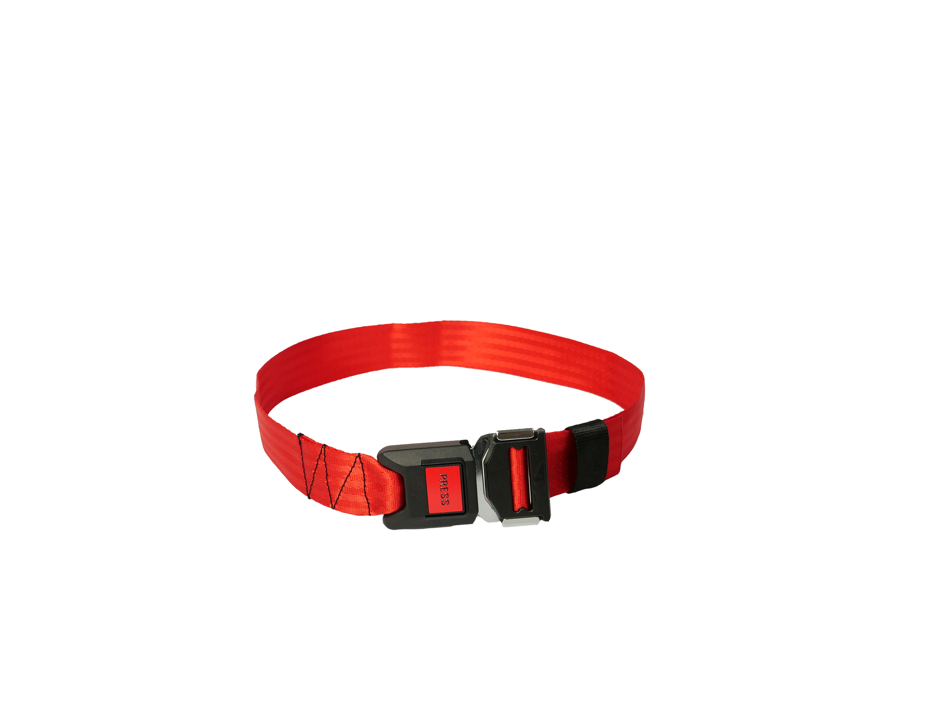 Sicherheitsgurtband gefertigt ist und mit einem praktischen Pressschloss
